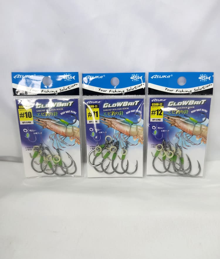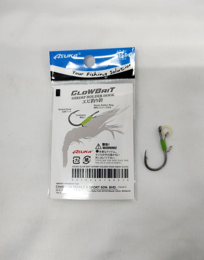 HOOK, ASUKA GLOW BAIT SHRIMP HOLDER GSHH -BARBED HOOK -LUMINIOUS -ELASTIC RUBBER RING