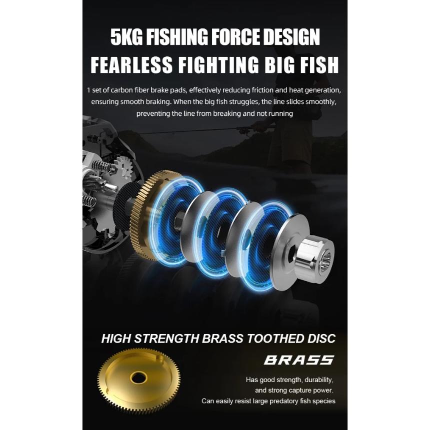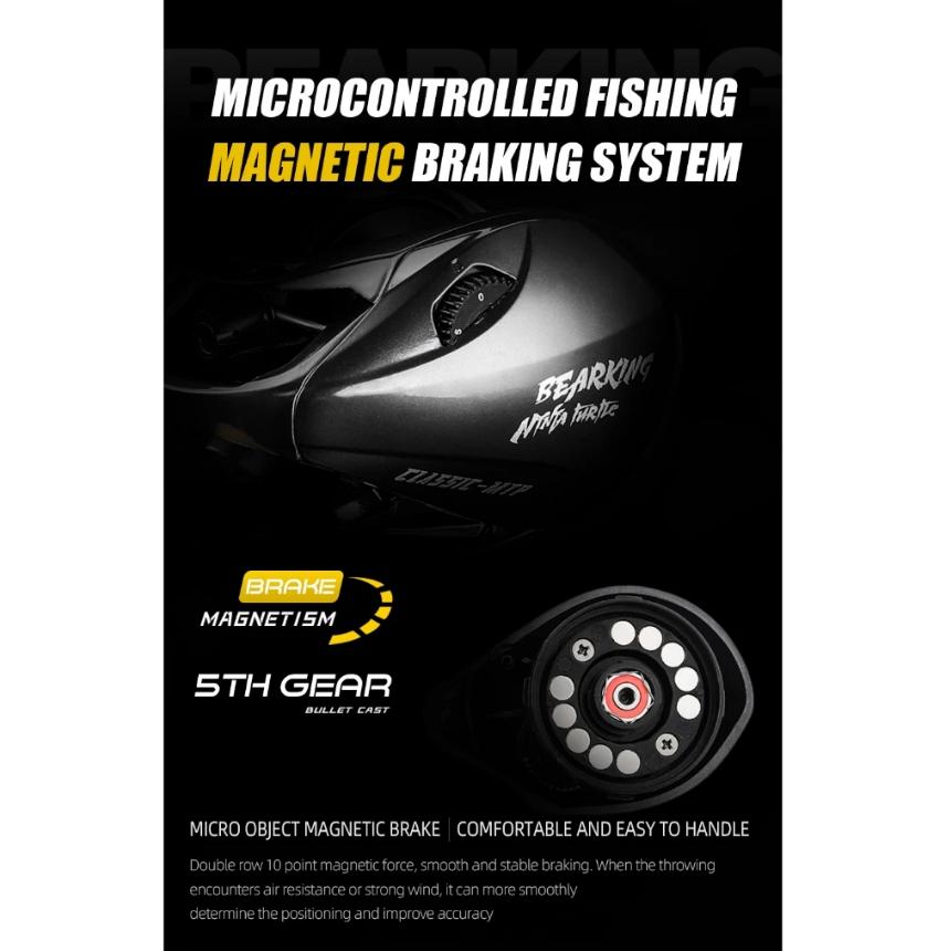 • Drag system: Magnetic drag with “target” mark for fine tuning