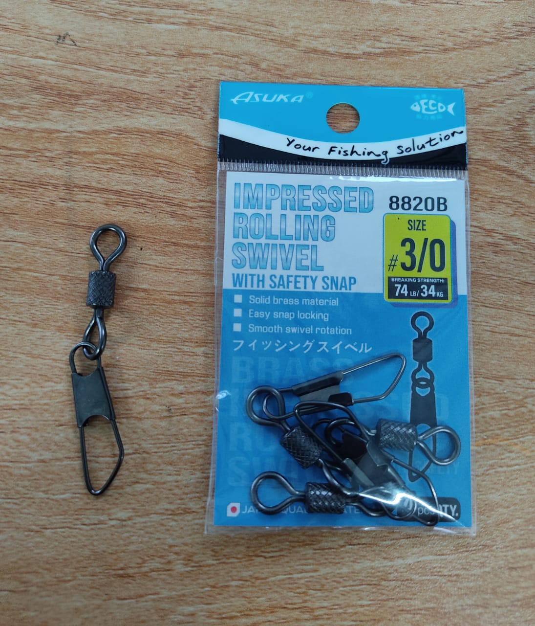 SWIVEL, ASUKA BRASS IMPRESSED ROLLING SWIVEL WITH SAFETY SNAP 8820B